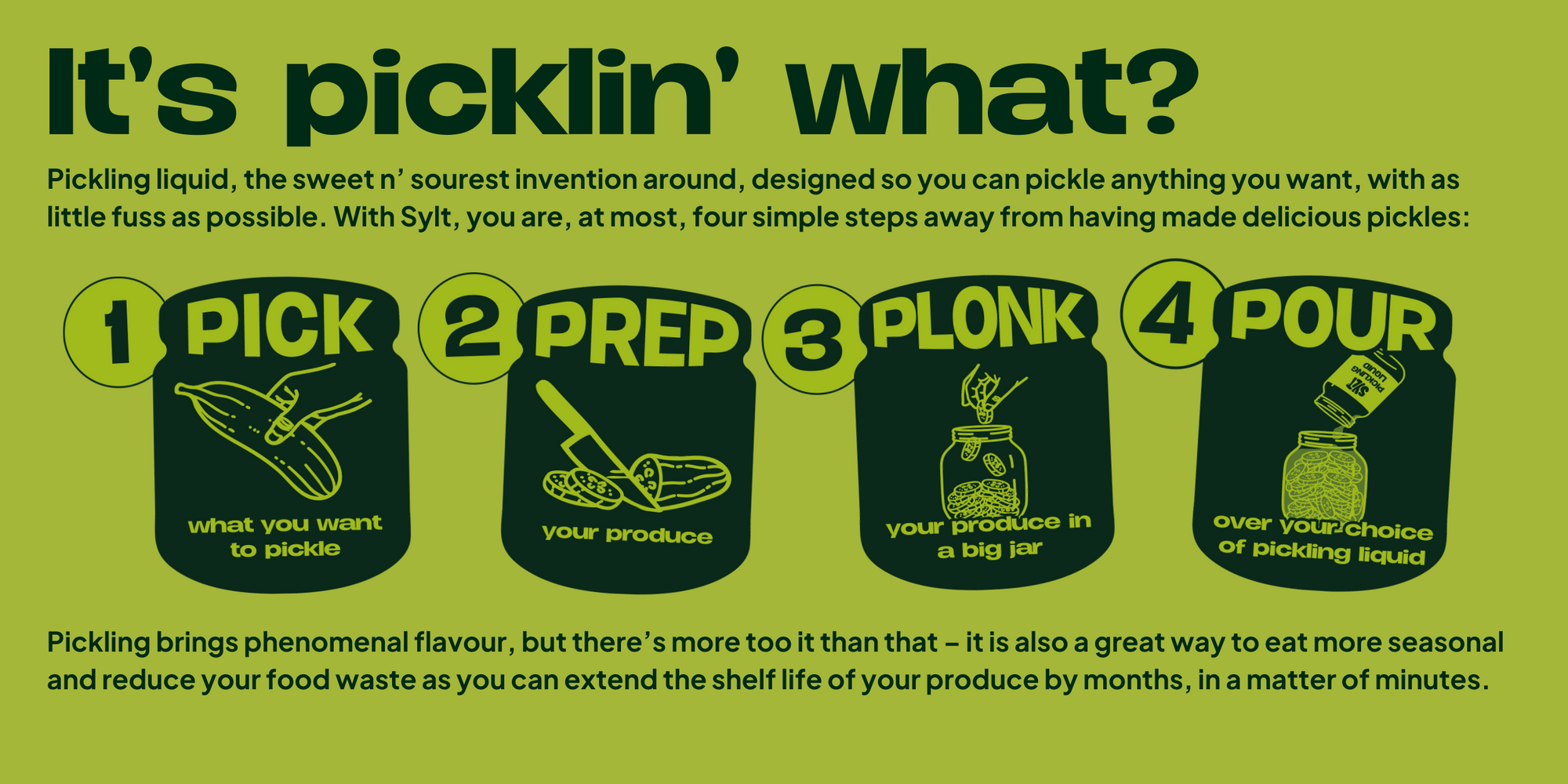 We're Sylt. The pickling liquid company with years of experience and jars of passion. We're bringing something fresh to the old school tradition of pickling with our range of unique and delicious flavours.